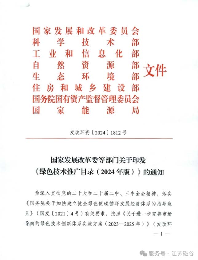 【喜報】我司繞組式永磁耦合調速技術入選國家發改委、科技部、工信部等八部委《綠色技術推廣目錄(2024年版)》